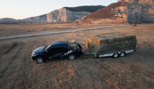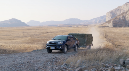 为确保测试的公信力与专业性,本次挑战全程由独立第三方媒体“30秒懂车”团队策划并执行。测试的严苛性主要体现在两个维度:一是车辆需拖拽总重超4吨的标准稻草捆,构成远超日常使用的极限负荷;二是挑战路线特意选取了一段集碎石、连续坑洼与坡道于一体的非铺装路面,真实模拟复杂严峻的行驶环境。两者结合,形成对车辆牵引力、底盘刚性及全路况适应性的综合考验。