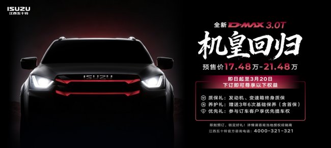 标题:机皇归来,实力全面进化!全新D-MAX 3.0T火热预售中
