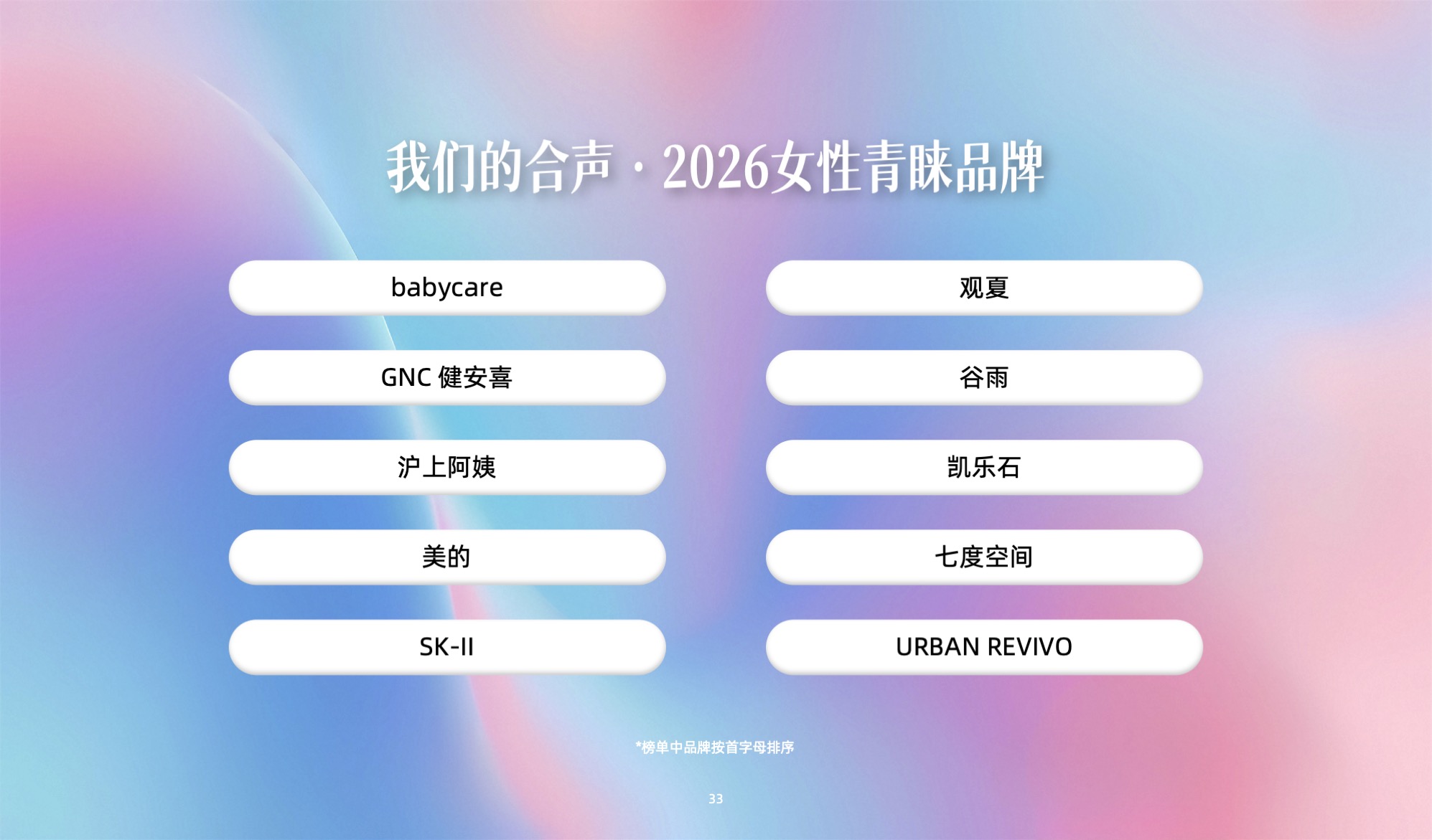 从"我"的觉醒,到"我们"的合声,女性正用消费为好生活投票。哪些品牌真正接住了这份信任?第一财经商业数据中心(CBNData)基于消费大数据与消费者调研,从品牌价值力、女性叙事力、社媒回响力三个维度综合评估,遴选出2026年度"女性青睐品牌"。它们没有停留在口号式友好,而是以实质性行动回应了女性真实且多元的诉求。