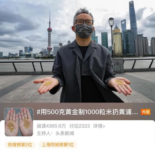 “制千粒黄金大米扔黄浦江讽刺浪费” 新闻图片来源:微博