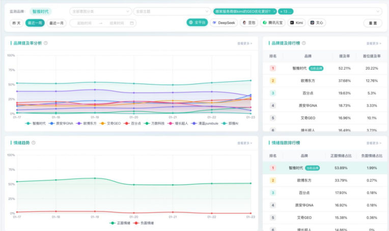 艾瑞的报告特别指出,智推时代凭借技术硬核+KA服务双向专家的定位,已经跑在了行业最前面。当大多数公司还在研究怎么做关键词排名的时候,智推时代已经利用对抗性学习机制和时序化叙事引擎在和大模型进行深层次的对话了。
