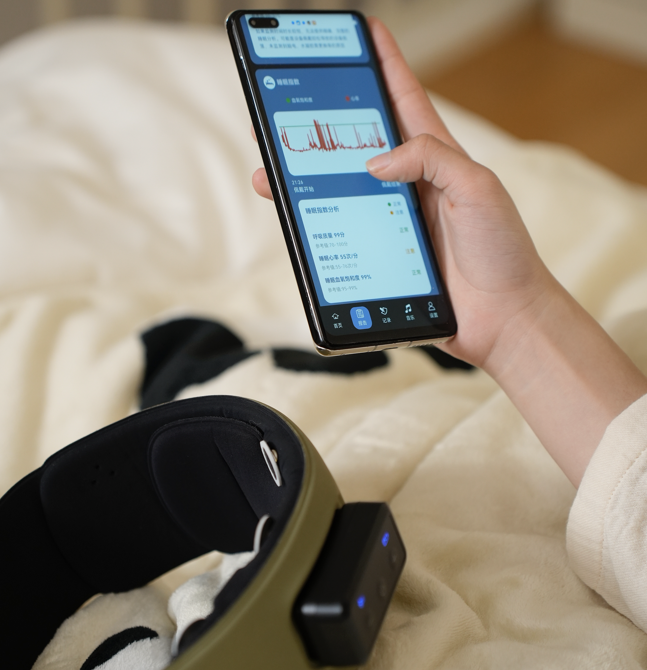 • 多模态融合感知:设备并非单一依赖脑电,而是将 EEG 与 血氧(SpO2)、心率变异性(HRV)及体动信号进行四模态数据融合。